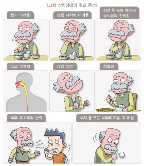삼킴 곤란 문제로 발열이나 체중감소, 폐렴 등이 발생한다면 삼킴 장애가 있다고 판단할 수 있습니다.