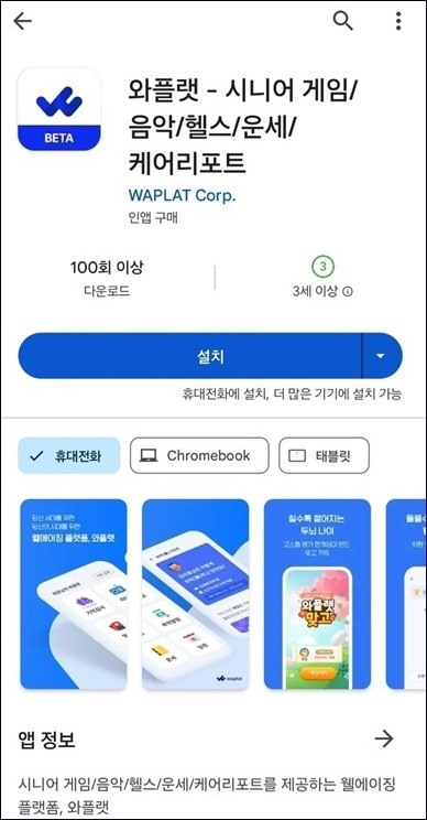 위 앱서비스는 Play 스토리에서 와플랫(Waflat) 앱을 설치하면 되며 다양한 시니어 도움서비스 기능을 제공합니다. 와플랫은 모바일 Android 기기에서만 사용할 수 있습니다. 이러한 디지털 앱을 일상생활에 들이는 서비스를 설치하면 나이 들어 생활하는데 내게 필요한 건강과 여가 시간을 보내게 하는 우물물을 퍼올리는 일이 시작됩니다.